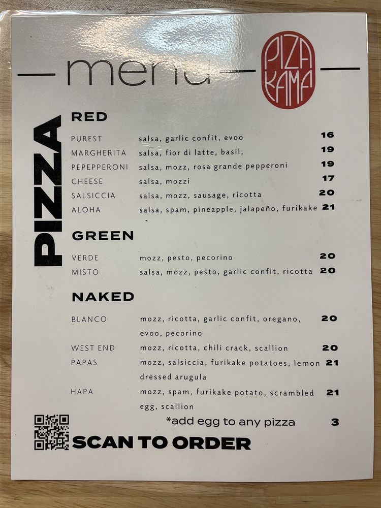 Piza Kama - Scratch Pizza Bar Menu